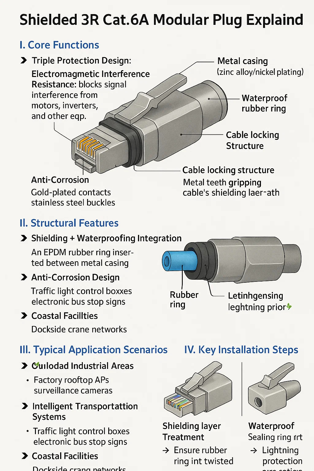 The metal teeth at the tail end grip the cable's shielding layer and outer sheath, providing anti-pull and anti-loosening capabilities.